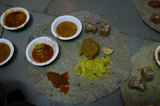 Now, the train car is divided into a number of subsections. Each subsection is made up of a top and bottom bunk bench, facing another set of benches. On one top bunk is me, Sarah, the Alpha-Male and a middle aged woman (who climbs on at the next stop and proceeds to take the majority of the bench for herself). Across from us is (what I presume is) train attendant, what I guessed was his brother, two other men and a small girl who is so squeezed in that we can hardless see her head peaking out over their shoulders. Most of us have taken our shoes and sandals off and have placed them on the fans on the ceiling above us, so that we don't accidently kick those elow us with them. Below us is a half dozen other people, and across from them another half dozen. Between those people there are three or four young boys who are standing, and catching my Rupees that keep falling out of my pocket onto their heads.